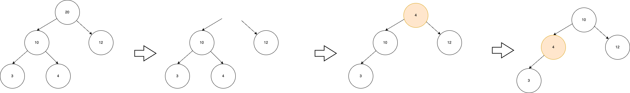 - 자식 노드의 값이 작을 때 까지 2번 작업을 반복합니다.